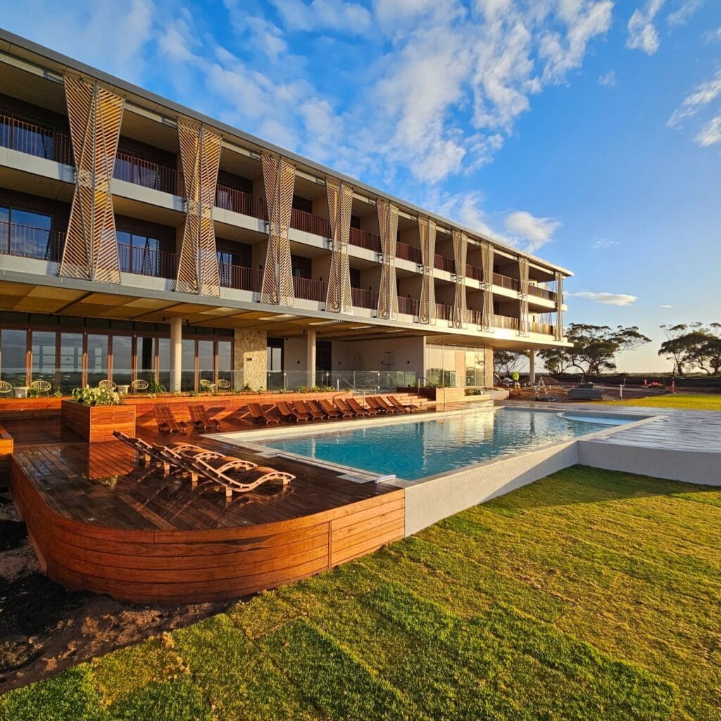 Set within the extraordinary landscapes of Monarto Safari Park, the new Monarto Safari Park Resort is a three-storey, 78-room luxury hotel offering a unique stay immersed in nature. The hotel features a day spa, restaurant, and flexible meeting spaces, creating a complete destination experience while supporting Zoos South Australia’s growing eco-tourism vision.