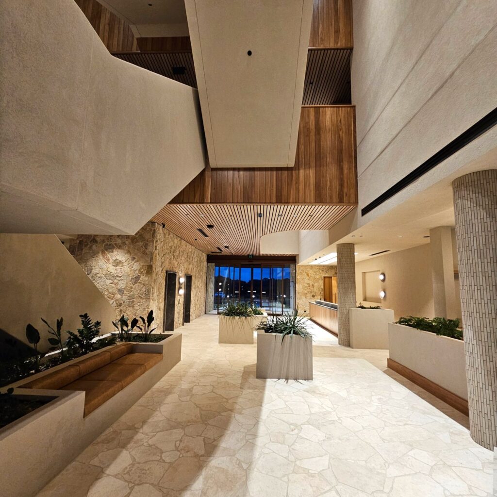 Tad-Mar Electrical was engaged by Long Contracting to deliver the full electrical package for this landmark project. Works included the installation of high voltage infrastructure, supply and installation of main switchboards, and comprehensive electrical lighting and power throughout the hotel. Tad-Mar also installed LV submain cabling, lighting control systems, pit and pipe infrastructure, and carpark lighting. A standby generator, solar PV system, structured cabling, and FTA/MATV systems were integrated to ensure reliable and future-ready operations.