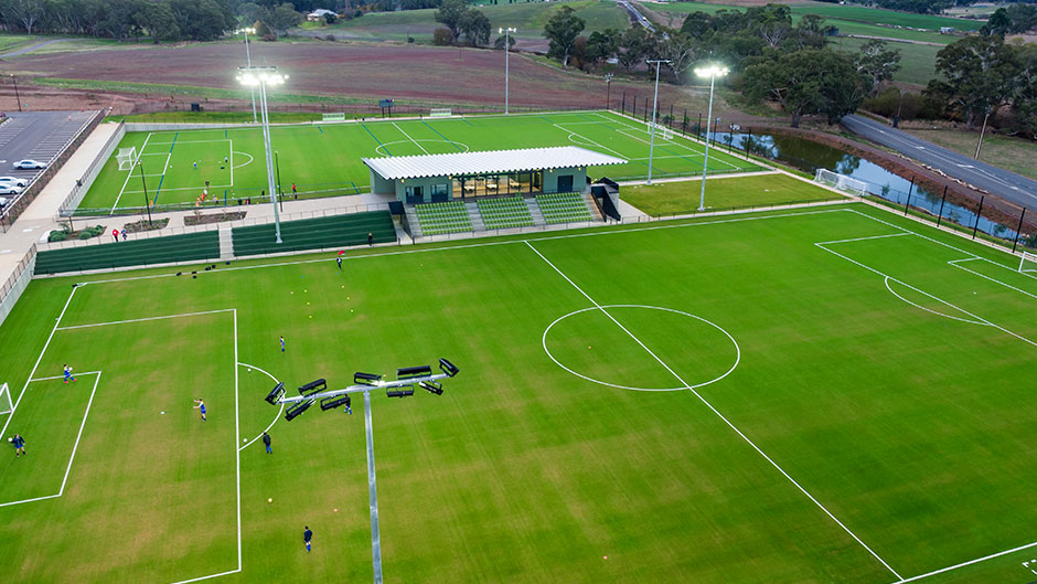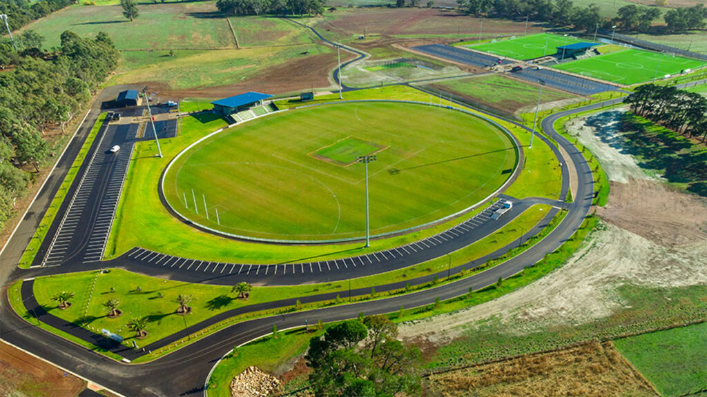 Located in South Australia’s growing Adelaide Hills region, the Mount Barker Regional Sports Hub is a multi-discipline facility designed to support a wide range of sporting activities and community events. Stage 1 of the project delivered an AFL-grade oval, a cricket oval, two FFA-approved soccer pitches, grandstands, and modern clubroom facilities.