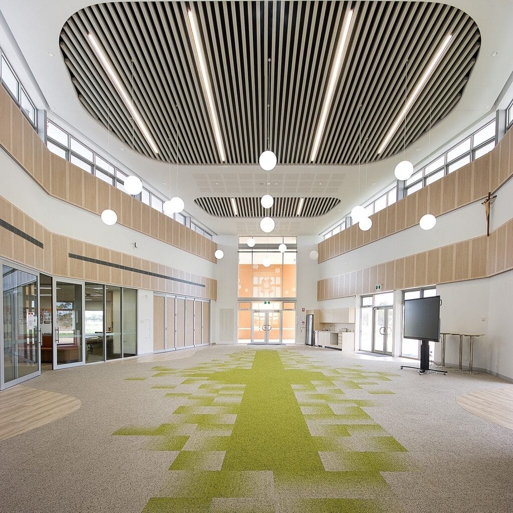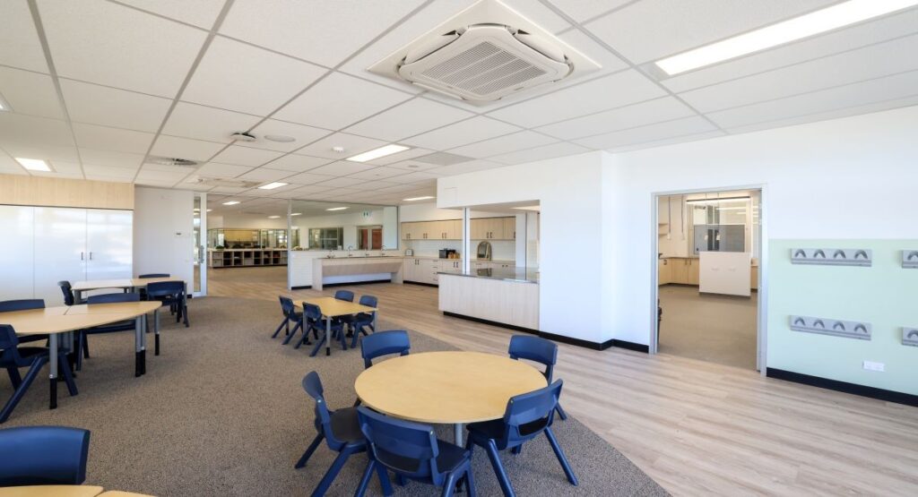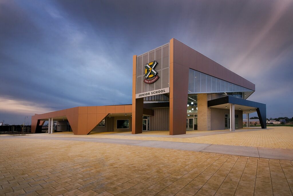 Located at Xavier College’s Two Wells campus, stage 4 offers learning spaces for both middle years and senior students. The specilsed facility includes science laboratories, art studios, maker spaces, a multipurpose area and student hub, the development also consists of a soccer pitch and 6 multi purpose courts. Tad-Mar Electrical was engaged by Mossop to complete the electrical services for the development. Works included the installation of high voltage conduits & transformer including associated civil works, consumer mains cabling, supply and installation of the site’s main switchboard and distribution boards, complete electrical fitout of the various learning spaces. Tad-Mar also carried out pit and pipe infrastructure to support future site stages and sports lighting. Dali lighting control was also incorporated into the various areas, and Tad-Mar also carried out the installtion of security, access control, and CCTV, a complete public address system was installed across both levels, and external areas. To support the colleges efficiency needs a full solar PV array system and energy managment systems were installed.